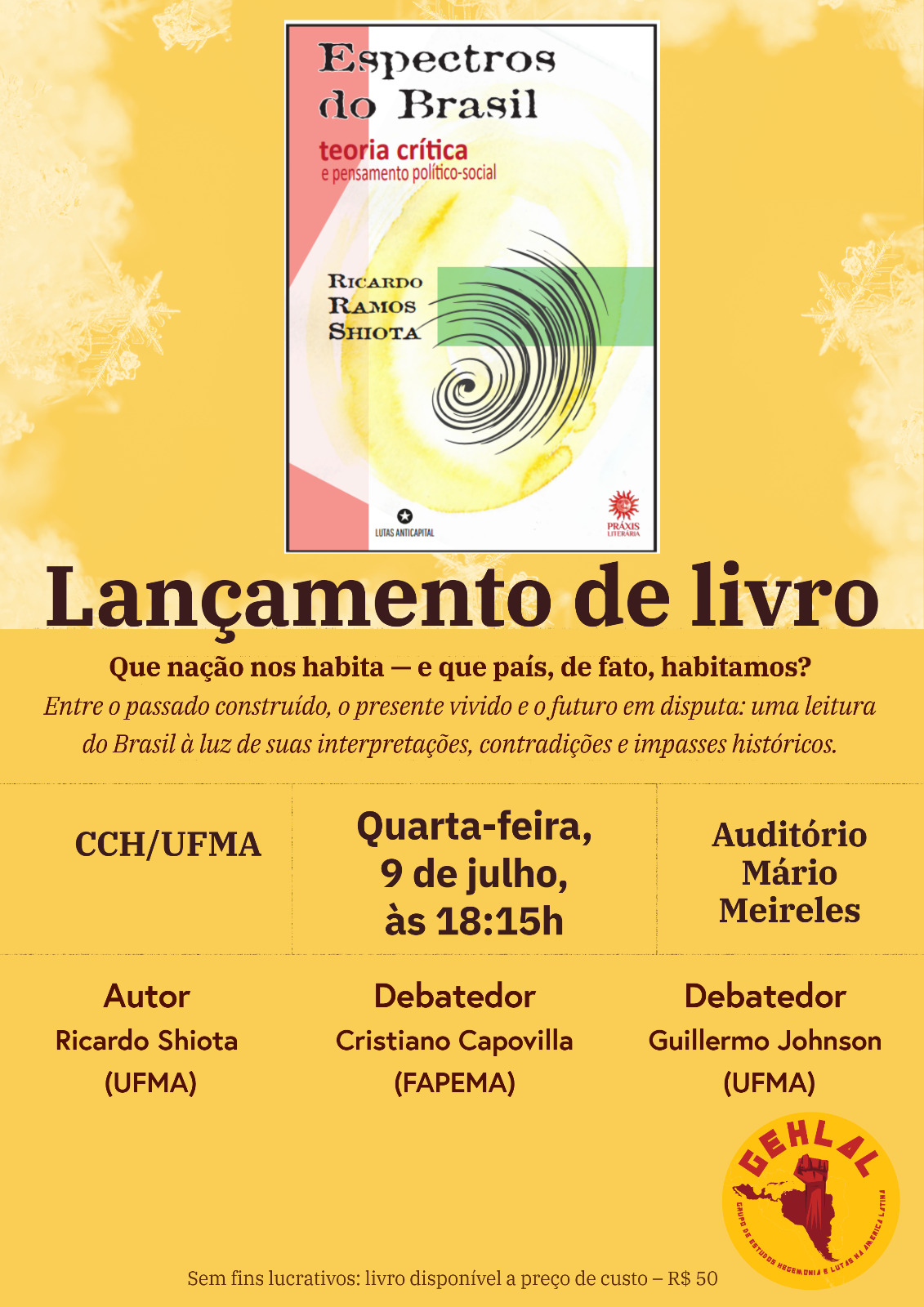 O lançamento será mais do que uma apresentação de livro. Será um momento de debate e reflexão. Estarão presentes o autor Ricardo Shiota (UFMA) e os debatedores Cristiano Capovilla (FAPEMA) e Guillermo Johnson (UFMA), compondo à mesa.